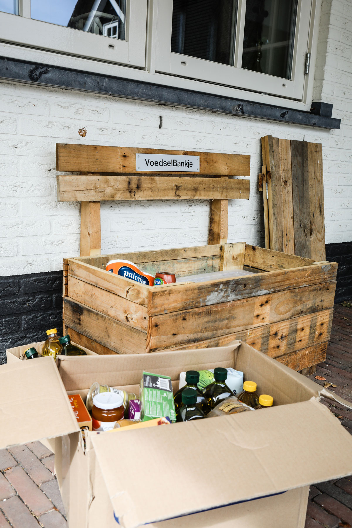 Hoe komen de levensmiddelen bij de voedselbank? Martine Visser: “Elke buurtcoördinator zet elke maand op een afgesproken tijdstip zijn krat of kratten voor de deur. De mensen in de straat hebben kort daarvoor een mailtje of een appje ontvangen met daarin speciale verzoeken. Daarin staat waar we op dat moment behoefte aan hebben. De straatgenoten kopen dit of pakken het uit eigen voorraad en doen hun spullen in de kratten. De buurtcoördinatoren brengen deze kratten vervolgens naar onze locatie.”