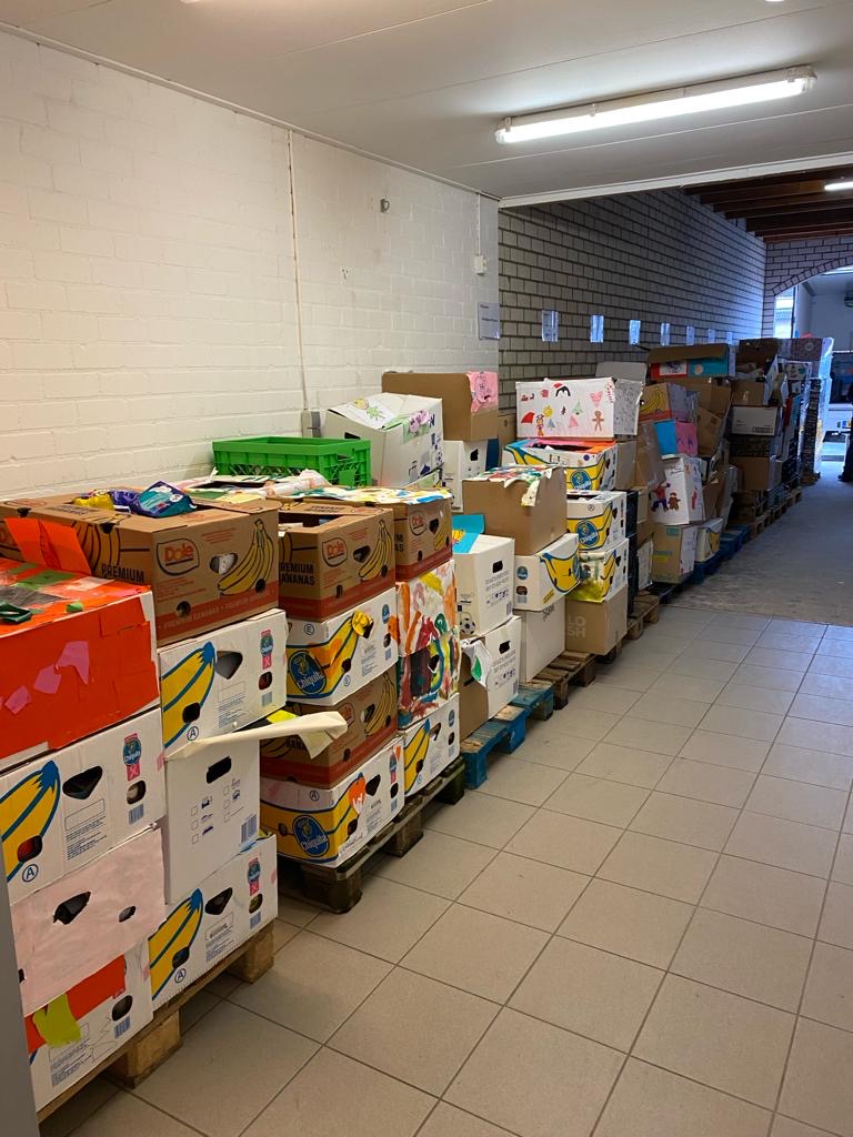 vrachtwagens vol producten, daar hebben we vier maanden van kunnen uitdelen. We zijn drie dagen bezig geweest om alles te ordenen.”